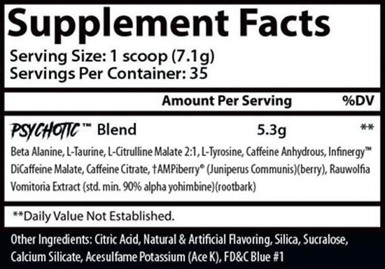 Psychotic - Insane Labz PSYCHOTIC® is not intended for use by persons under the age of 18. Do not consume caffeine from other sources, including but not limited to, coffee, tea, soda, and other dietary supplements or medications containing phenylephrine or caffeine. Do not use PSYCHOTIC® for more than 8 weeks. Insane Labz Psychotic Hellboy 250g pre-workout - Bodyshock.pro Insane Labz Psychotic Hellboy a new pre-workout supplement that increases physical condition. Pre-workout increases the lipolysis process due to the content of stimulants. The supplement helps to obtain a powerful muscle pump and provides energy for the whole day. Ingredients such as caffeine (in anhydrous form, caffeine citrate and Infinergy ...