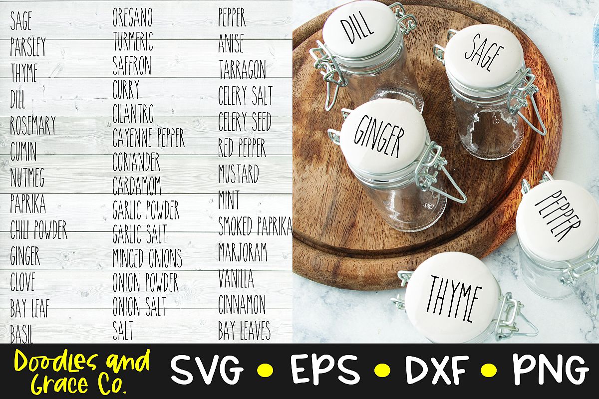 83 Herb and Spice Jar Labels SVG Kitchen Labels Cut File | Etsy This Herb and Spice Jar Labels SVG File is designed for cutting vinyl with your Silhouette, Cricut, or other cutting machine; printing; creating an iron-on transfer; and more! Please make sure your machine and software are compatible before purchasing. ... This Herb and Spice Jar Labels SVG design (whole or in part) may not be copyrighted or ...