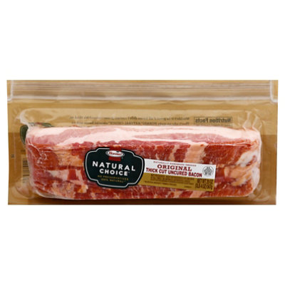 NATURAL CHOICE® Bacon, Uncured, 18/22 slice, 15 lb • Hormel Foodservice Raw Wide Shingle Bacon. NATURAL CHOICE ® uncured bacon is hardwood smoked. It is 100% natural (minimally processed, no artificial ingredients), no added msg, no added nitrates or nitrites, and is gluten-free. Naturally smoked over Applewood chips give bacon great flavor for superior customer satisfaction. 100% natural (minimally processed, no ...