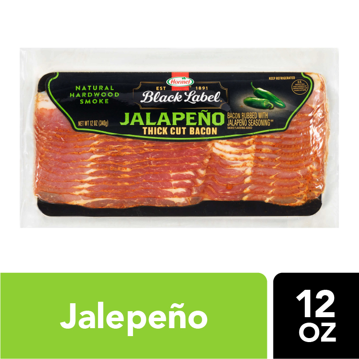 Bacon Recipes For A Savory Brunch - Inspired - Hormel Foods 1 (1-pound) package HORMEL® BLACK LABEL® Premium Brown Sugar Bacon 1 cup maple syrup 2 cups firmly packed brown sugar 2 teaspoons crushed red pepper flakes Instructions Heat oven to 325°F. Grease wire racks; place on baking sheets. Dip each bacon slice in maple syrup. Sprinkle generously with brown sugar. Arrange in single layer on wire racks.