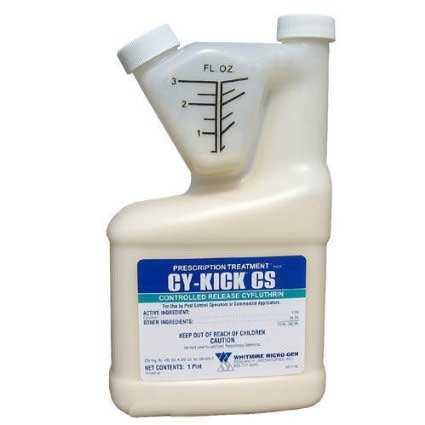 Cy-Kick CS Insecticide Complete Review - PESTKILL Cy-Kick CS Insecticide is a concentrated liquid that can be used to kill all types of pests, from ants to ticks. It comes in a bottle that is one ounce in size. The ratio for different mix rates is 0.1% or 2 oz per gallon. How Does It Work Cy-Kick CS is a pesticide with an active ingredient called Cyfluthrin 6%.