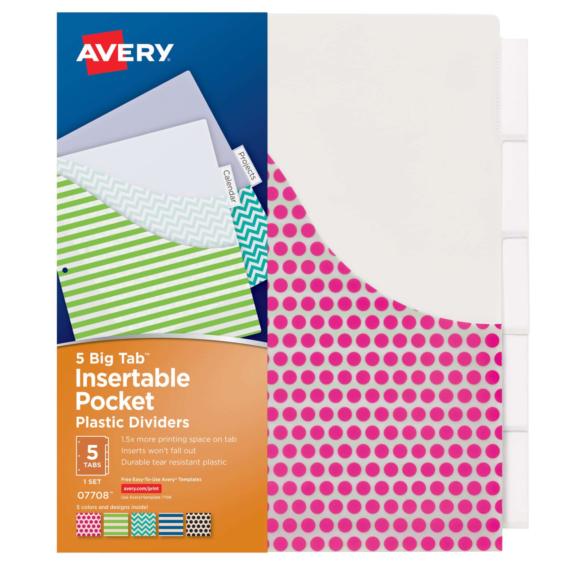 Avery 11900 Insertable Big Tab Plastic Dividers, Letter, Multicolor, 5 ... Use free templates from Avery Design & Print to create professional-looking tabs. An easy-access notch at the top of the tab lets you slide inserts in and out with ease, while a secure indent point at the base of the tab keeps your insert from falling out. ... Avery Big Tab Insertable Pocket Plastic Dividers for 3 Ring Binders, 5-Tab Set ...