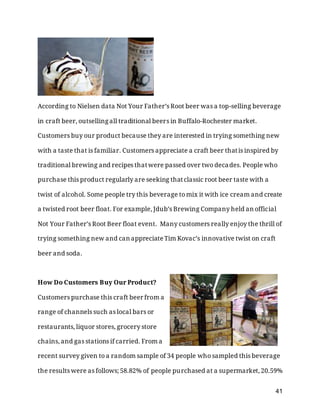 Not Your Father's Root Beer (5.9%) Total Calories Derived From Fat: 0; Category: Craft; Style: Herbed Beer; Seasonality: Year Round; BEER DESCRIPTION. Because of the overwhelming response to Not Your Fathers Root Beer, we have had thousands of requests from all over the country for this product in a package format. ... Sugar (g) : 41.9. Calcium (%) : Iron (%) : Vitamin A ...