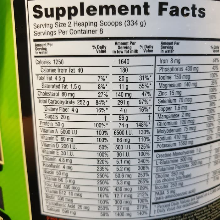 Optimum Nutrition Serious Mass | Vitamin World From Manufacturer's Label: Serious Mass is the ultimate in weight gain formulas. With 1,250 calories per serving and 50 grams of protein for muscle recovery, this instantized powder makes the ideal post-workout and between meals shake for sizing up your goals. Contains over 250 g of Carbohydrates with no added sugar. Optimum Nutrition Serious Mass | Optimum Nutrition IN SERIOUS MASS is the ultimate weight gain and muscle building formula. With +1200 calories per 2-scoop serving and 50 grams of protein to support muscle recovery, this powder makes the ideal post-workout and between meals shake for sizing up your goals. SERIOUS MASS provides you with the tools you need to support your weight gains goals.¹ Benefits Amazon.com: Optimum Nutrition Serious Mass Weight Gainer Protein Powder ... This item: Optimum Nutrition Serious Mass Weight Gainer Protein Powder, Vitamin C, Zinc and Vitamin D for Immune Support, Banana, 12 Pound (Packaging May Vary) $70.00 ($0.36/Ounce) Optimum Nutrition Micronized Creatine Monohydrate Powder, Unflavored, Keto Friendly, 120 Servings (Packaging May Vary) $44.99 ($2.13/Ounce) Amazon.com: Optimum Nutrition Serious Mass Weight Gainer Protein Powder ... Optimum Nutrition Serious Mass Serious Mass is the ultimate in weight gain formulas. With 1,250 calories per serving and 50 grams of protein for muscle recovery support, this instantized powder makes the ideal post-workout and between meals shake for sizing up your goals.