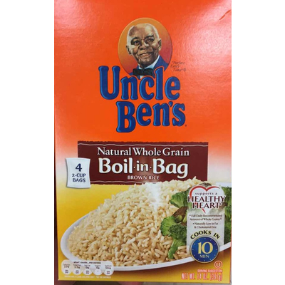 UNCLE BEN'S Whole Grain Brown Rice, 25 Pound - amazon.com Uncle BENs whole grain brown rice, 25 pound -- 1 each. The ideal response to Patron demands for whole-grain, lower-carb offerings, this economical brown rice is always fluffy, never sticky, and cooks to perfection in just 25 minutes. A natural source of fiber, b-vitamins, and iron to support a healthy heart. Product details