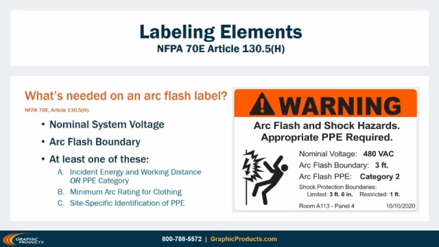 NFPA 70E Arc Flash Safety Labels — RJS Engineering: NFPA 70E Arc Flash ... NFPA 70E Arc Flash Safety Labels Arc Flash PPE and Chart Arc Flash Safety Training Arc Flash Hazard Warning Labels The 2021 NFPA 70E defines what should be on each safety label. The 2021 NFPA 70E 130.5 (H) states warning labels must include: Nominal system voltage Arc flash boundary (determined by data from Arc Flash Risk Assessment)