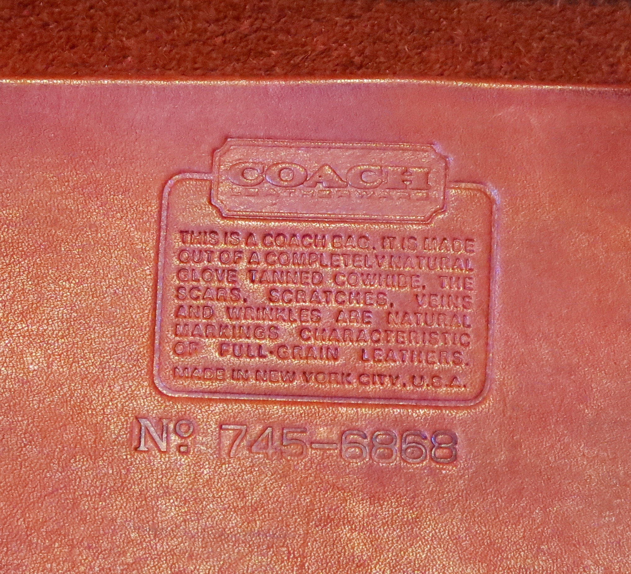 The Ultimate Guide to Coach Serial Numbers (2022 UPDATE) This is the little leather patch inside the bag which also features a small text about the Coach brand (the creed), the materials of the bag or sometimes even something special about the style of bag in which it is found. On earlier bags, the creed was stamped straight onto the leather. Guide: Coach Creeds, Logos, Hangtags... A Chronological Perspective ... The Coach hangtag is first used in the early 1970s and replaces the baseball hangtag The "Coach" Cartouche Stamp This is first "cartouche" stamp placed in the early bags. It was placed either on an inside pocket, under the flaps on the outside, or on some of the smaller bags, at the bottom seam. From My Friends at Coach: