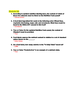Food Labeling & Nutrition | FDA Food labeling is required for most prepared foods, such as breads, cereals, canned and frozen foods, snacks, desserts, drinks, etc. Nutrition labeling for raw produce (fruits and... HOME 1501 QUIZ 1-4 Flashcards | Quizlet A food label ingredient list reads: Wheat flour, vegetable shortening, sugar, salt, and cornstarch. What item would be found in the lowest amount in the food: cornstarch Main sources of complex carbohydrates are Beans, seeds and grains [Answered] A food label ingredient list reads in the following order ... A food label ingredient list reads in the following order: wheat flour, vegetable shortening, sugar, salt, and cornstarch. What item would be found in the SMALLEST amount in this food? a. salt b. sugar c. cornstarch d. wheat flour e. vegetable shortening Question 2 Which term is used to describe a cut of meat having a low fat content? a. Grade ... Nutrition Ch. 2 **** Flashcards | Quizlet Abundance, B vitamins, kcalories, diet control, minerals, and variety b. Abundance, balance, conservative, diversity, moderation, and vitamins c. Adequacy, bone development, correction, vitamin density, master, and variety d. Adequacy, balance, kcalorie control, nutrient density, moderation, and variety d