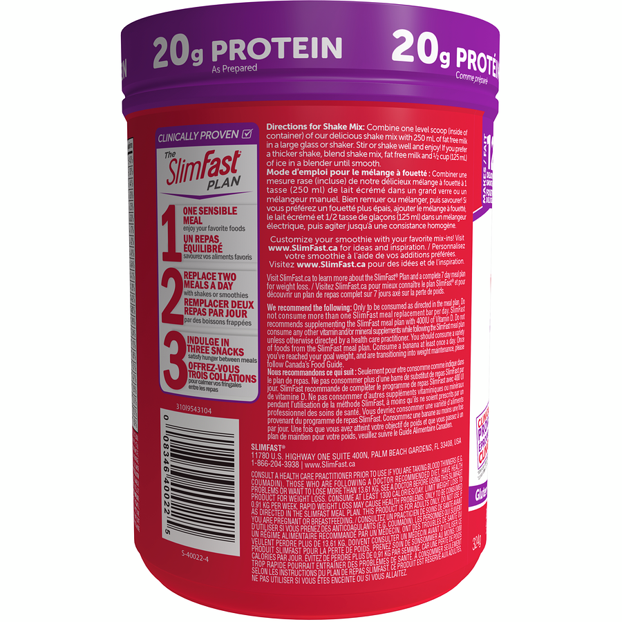 Slimfast nutrition label. SlimFast Advanced Nutrition Creamy Chocolate Shake High Protein 4hr Hunger control. Ideal for low carb. Clinically proven lose weight & keep it off (When used as part of the SlimFast plan. Individual result may vary). SlimFast High Protein Nutrition Shakes Advance your weight loss goals with this delicious, high-protein advancement from SlimFast. Fuel up with 20g of protein, 1g of sugar, 5g of fiber, 24 vitamins ... Meal replacement shake by SLIM FAST - Nutritional Value Meal replacement shake by SLIM FAST contains 179 calories per 325 g serving. This serving contains 9 g of fat, 20 g of protein and 6 g of carbohydrate. The ... Tasty, Balanced Meal Shakes - Products - SlimFast Deliciously indulgent and full of balanced nutrition. It's a win/win situation ... Creamy and luxurious, this protein-packed shake is nutrition in disguise.