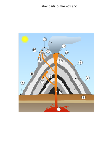 Label A Volcano Teaching Resources | TPT - TeachersPayTeachers The 11 parts of the volcano: volcano, magma chamber, conduit, side vent, parasitic cone, crater, lava flow, ash cloud, cone, topsoil, and crust.Includes: 11 cards with labels11 cards without labels11 labels1 blackline masterAfter the children have learned the individual parts, they can create their own booklet by coloring and labeling the …