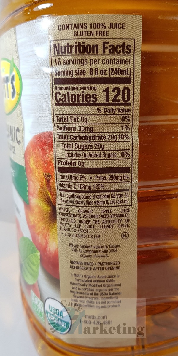 39 motts apple juice nutrition label