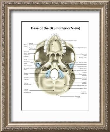 Inferior View of the Skull - Anatomical Justice Inferior View of the Skull. SKU: S04021. This exhibit depicts the anatomy of the inferior skull including: the foramen magnum, occipital condyles, mastoid process, styloid process, mandibular fossa, palatine bone, sphenoid bone, carotid canal, and the jugular fossa. Inferior view of the base of the skull: Anatomy | Kenhub Inferior nuchal line (inferior view) On the outer surface of the occipital bone is the inferior nuchal line. This is a small ridge of bone that projects from the posterior portion of the occipital bone. It gives attachment to a number of neck muscles including the rectus capitis posterior major and minor as well as the obliquus capitis superior. 7.2 The Skull - Anatomy and Physiology | OpenStax When looking into the nasal cavity from the front of the skull, two bony plates are seen projecting from each lateral wall. The larger of these is the inferior nasal concha, an independent bone of the skull. Located just above the inferior concha is the middle nasal concha, which is part of the ethmoid bone.
